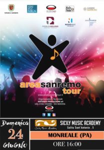 Area Sanremo Tour approda per il Casting della fase eliminatoria a Monreale (PA) , Quest’Anno Area Sanremo ha scelto come sede l’Accademia Musicale “SICILY MUSIC ACADEMY” diretta da M° Davide Cutrona.