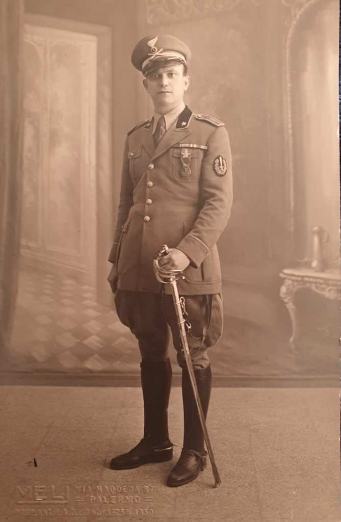 Il brillante caporale viene promosso caporalmaggiore il 21 settembre del 1918 e trattenutosi in servizio, dopo la vittoria conseguita dall’Italia il 4 novembre, è nominato Sergente il 24 ottobre del 1919 presso il 380° Btg. TM Comando Palermo.